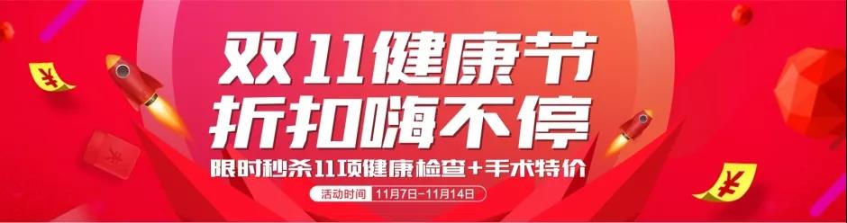 【活动主题】“双十一健康节·折扣嗨不停”限时秒杀—11项健康检查+手术特价